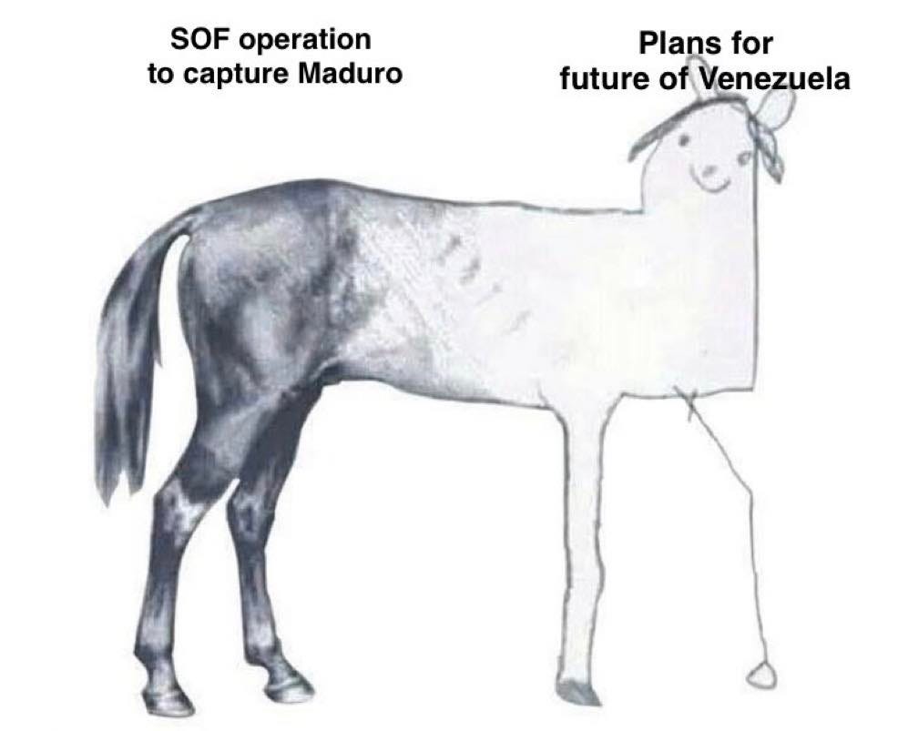 I’m fine with capturing Maduro, but this whole “we’re going to run Venezuela” thing is bizarre. It’s even worse than “we’re going to turn Gaza into the next Riviera.”